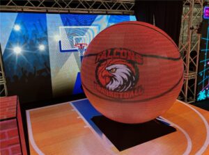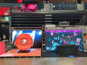 会場は琉球ゴールデンキングスの本拠地ということで、球体LEDにはバスケットボールを投影。