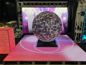 15分に1回、球体LEDがミラーボールに切り替わりハーフタイムショウとなる演出も!